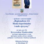 Tematem spotkania będzie książka „Regionalizm 2.0. Media hiperlokalne i małe ojczyzny”. Wszystko w ramach cyklu Nowa Marcia – prowincja zapomniana – Ziemia Lubuska – wspólne korzenie.