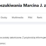 Jednocześnie na grupie zrzeszającej osoby, które pomagały w poszukiwaniach zaginionego 10 listopada Marcina J. pojawił się komunikat: Kochani. Dzisiaj poszukiwania Marcina zostały zakończone. Z przykrością informujemy, że Marcin nie żyje. Dziękujemy wszystkim za pomoc.