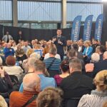 Spotkanie z Rafałem Trzaskowskim odbyło się w hali gorzowskiego CEZiB-u, która wypełniła się po brzegi. „Jesteśmy tu, bo wierzymy w Trzaskowskiego” mówili uczestnicy spotkania.