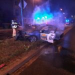 Cztery osoby poszkodowane i spalona taksówka – to bilans wypadku do jakiego doszło w sobotę przed północą w okolicach ulicy Woskowej.