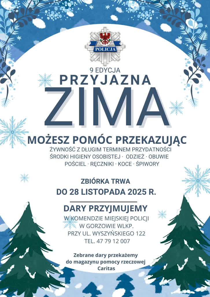 Gorzowscy policjanci kolejny raz zachęcają do przyłączenia się do akcji Przyjazna zima, która ma wesprzeć najuboższych i samotnych mieszkańców.