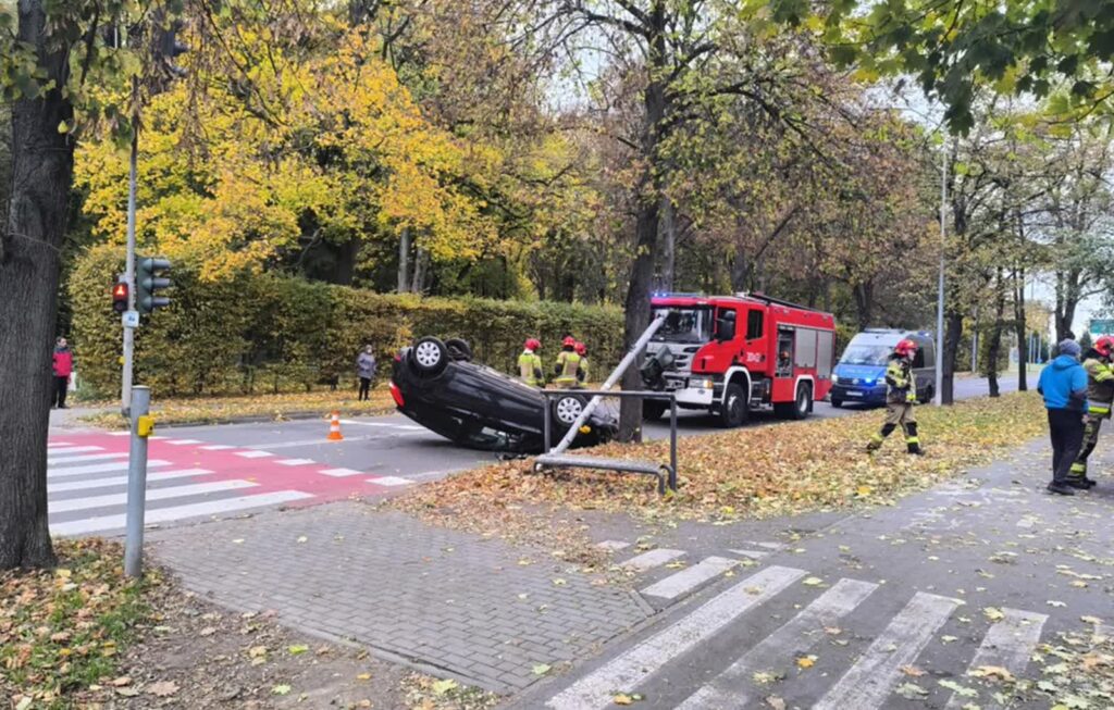 Na ul. Nowej w Gorzowie dachował samochód. Groźnie wyglądające zdarzenie skończyło się szczęśliwie dla kierującego nim 18-latka. Policja informuje, że mężczyzna nie opanował osobowego forda, najechał nieszczęśliwie na krawężnik i wywrócił auto.