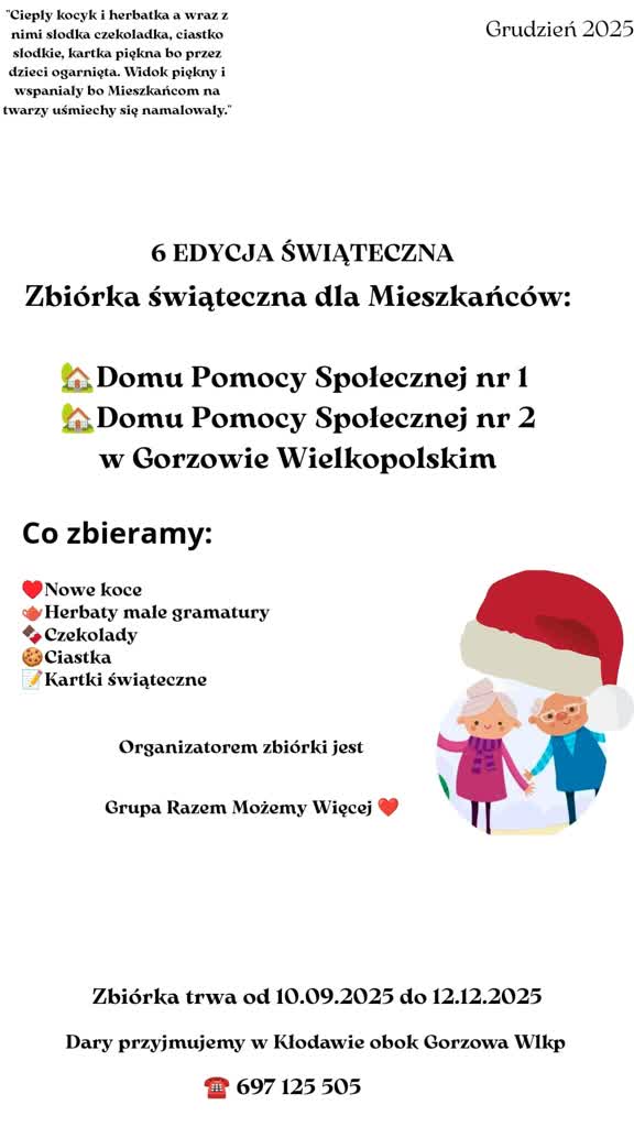 Kolejny raz w Gorzowie organizowana jest świąteczna zbiórka najpotrzebniejszych produktów, które następnie trafią do świątecznych paczek dla osób przebywających w gorzowskich Domach Pomocy Społecznej.