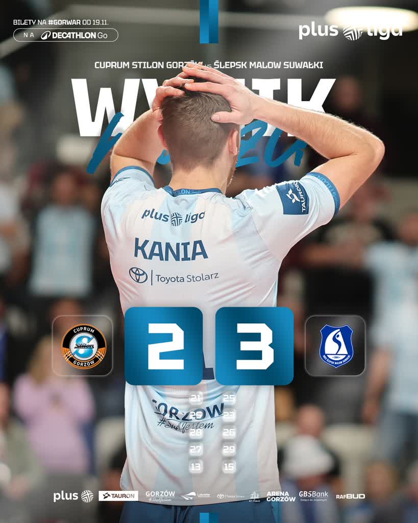 Gorzowianie przegrali u siebie ze Ślepskiem Suwałki 2:3, choć prowadzili 2:1 i 19:13 w czwartym secie. Pierwszą partię goście wygrali 25:21, kolejne dwie od początku do końca zacięte były dla Cuprum Stilonu: najpierw 25:23 a potem 28:26. W czwartym zanosiło się na pewną wygraną, ale wydarzyła się katastrofa, Ślepsk odrobił straty i wygrał 29:27. W tie-breaku uskrzydleni przyjezdni zwyciężyli 15:13: