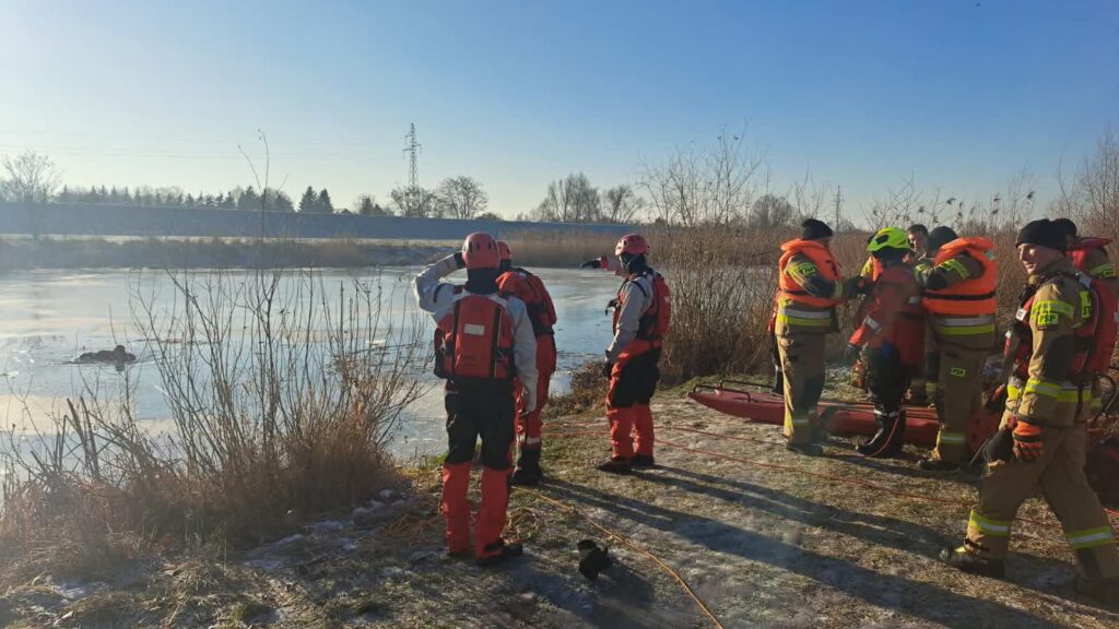 Strażacy apelują, by pod żadnym pozorem nie wchodzić na zamarznięte stawy, jeziora czy rzeki nawet jeśli wydaje nam się, że pokrywa lodu jest na tyle gruba, by utrzymać ciężar człowieka.