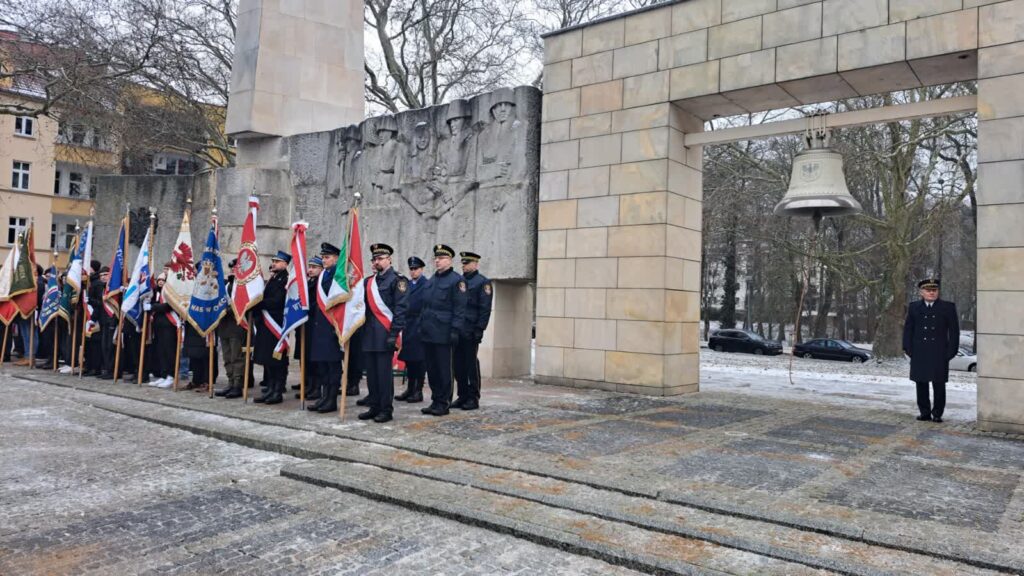 Tradycyjnie, na Placu Grunwaldzkim na którym symbolicznie uderzono w dzwon pokoju, zebrali się także gorzowscy uczniowie klas mundurowych.