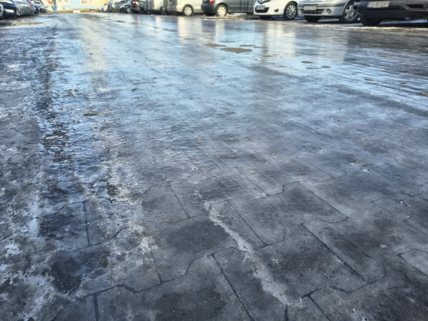 Wiele miejsc w Gorzowie to wciąż lodowiska. Od ostatniej gołoledzi minął już ponad tydzień. I o ile zdecydowana większość miejskich dróg i chodników w centrum i przy głównych drogach to już sucha i bezpieczna nawierzchnia, tak na wielu chodnikach osiedlowych wciąż mamy dramat. Podobnie, a nawet gorzej jest na parkingach przy dużych sklepach. Mieszkańcy nagrywają filmiki jak jeżdżą po nich na łyżwach. Miniona gołoledź była zjawiskiem jakiego w Gorzowie nie było od lat, niemniej minął już ponad tydzień, a wiele miejsc wciąż nie widziało piachu, ani soli.