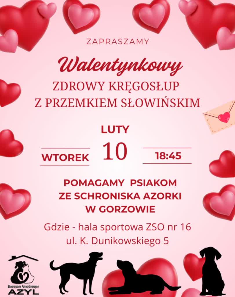 Coraz prężniej działająca w mieście grupa Zdrowy Kręgosłup zaprasza na kolejne zajęcia. Tym razem bezpłatne zajęcia, które prowadzi Przemysław Słowiński, połączone zostaną ze zbiórką charytatywną na rzecz gorzowskiego schroniska Azorki