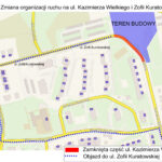 Od poniedziałku kierowcy i piesi na Osiedlu Piaski poruszają się inaczej niż dotychczas. Przejazd z ulicy Kazimierza Wielkiego w rejonie budynku 85-87 do ulicy Zofii Kuratowskiej 1-13 w obu kierunkach został zamknięty. Wykonawca budowy północnej obwodnicy Gorzowa przystępuje do budowy ronda u zbiegu ulic Kazimierza Wielkiego, Kuratowskiej i Owocowej. Ruch pieszych na chodnikach także został ograniczony.
