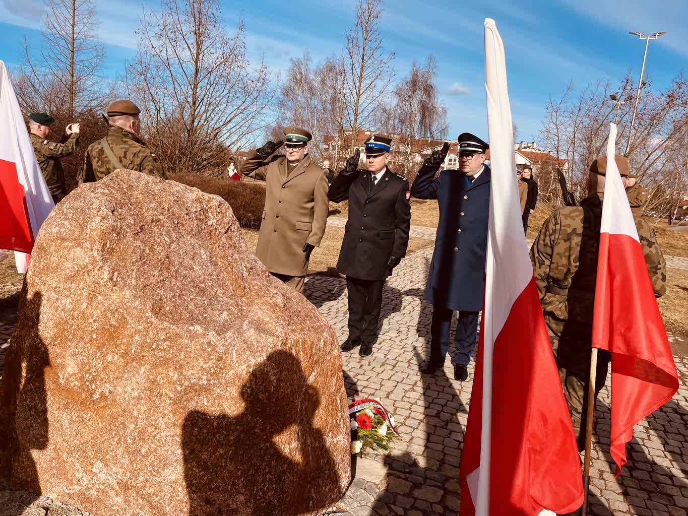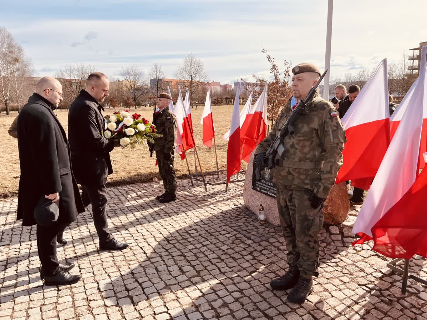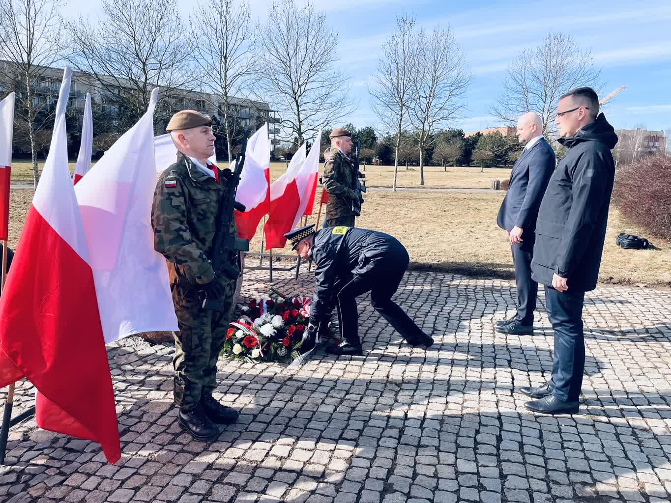 Po złożeniu kwiatów pod pomnikiem Rotmistrza Witolda Pileckiego przez delegacje służb mundurowych oraz władze województwa i miasta złożono również wiązanki kwiatów przy obelisku Pamięci Żołnierzy Wyklętych w gorzowskim Parku 750-lecia.