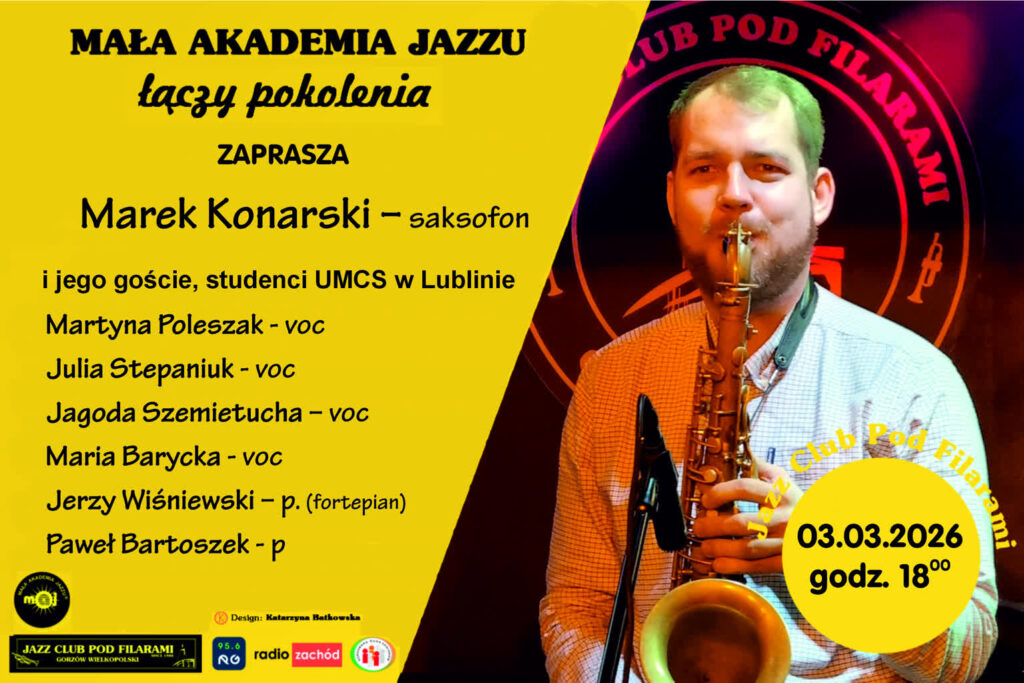 Jazz Club Pod Filarami oraz Gorzowska Rada Seniorów zapraszają na kolejny koncert z cyklu „Mała Akademia Jazzu Łączy Pokolenia”. W czasie koncertu na scenie pojawią się m.in.: studenci z Lublina.