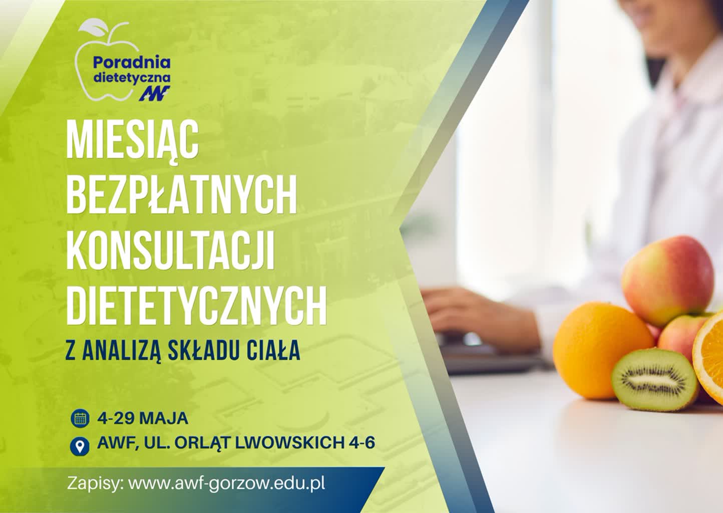 Gorzowski AWF zaprasza na bezpłatne konsultacje dietetyczne z analizą składu ciała. Akcja organizowana jest w ramach Poradni Dietetycznej i potrwa od 4. do 29. maja.
